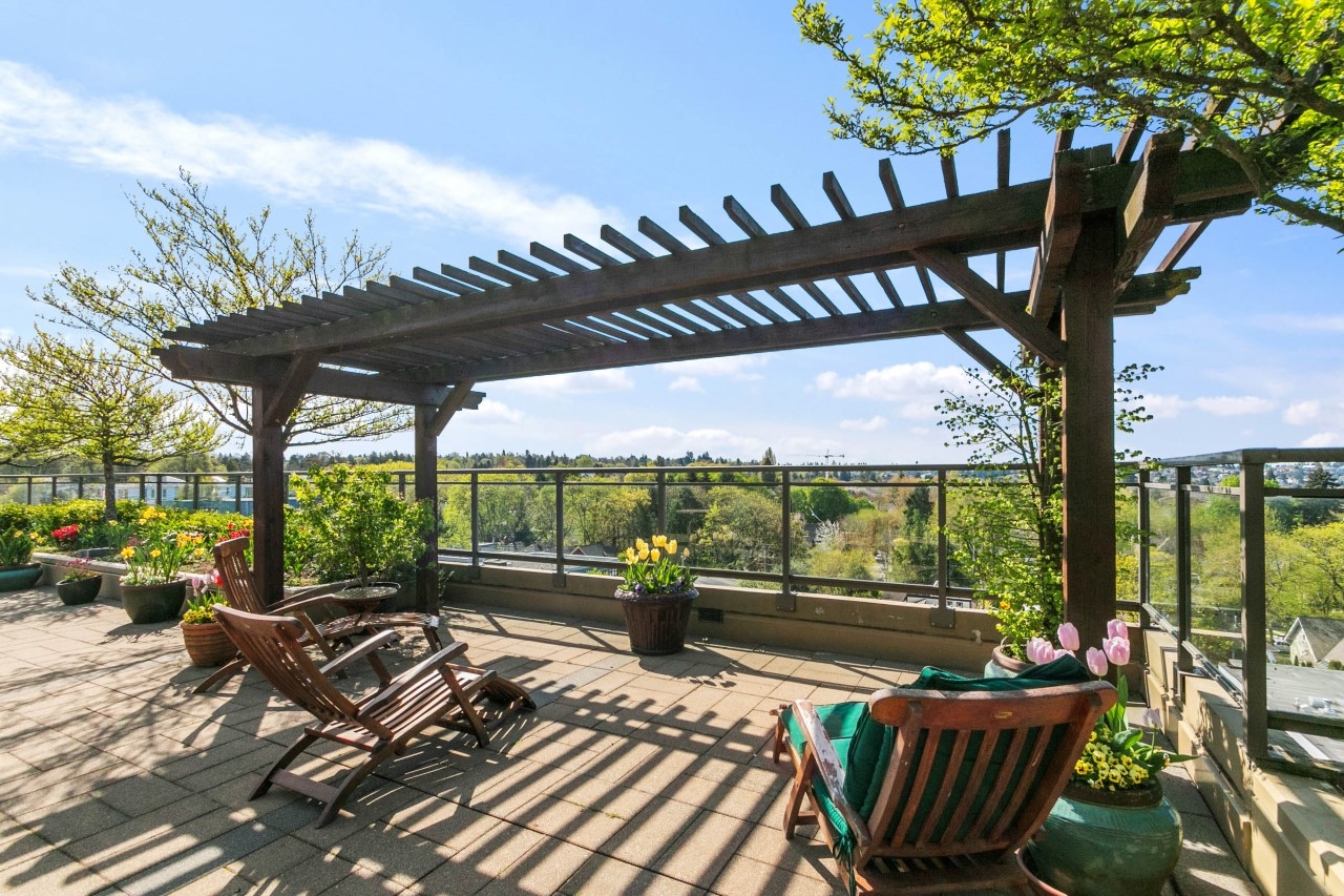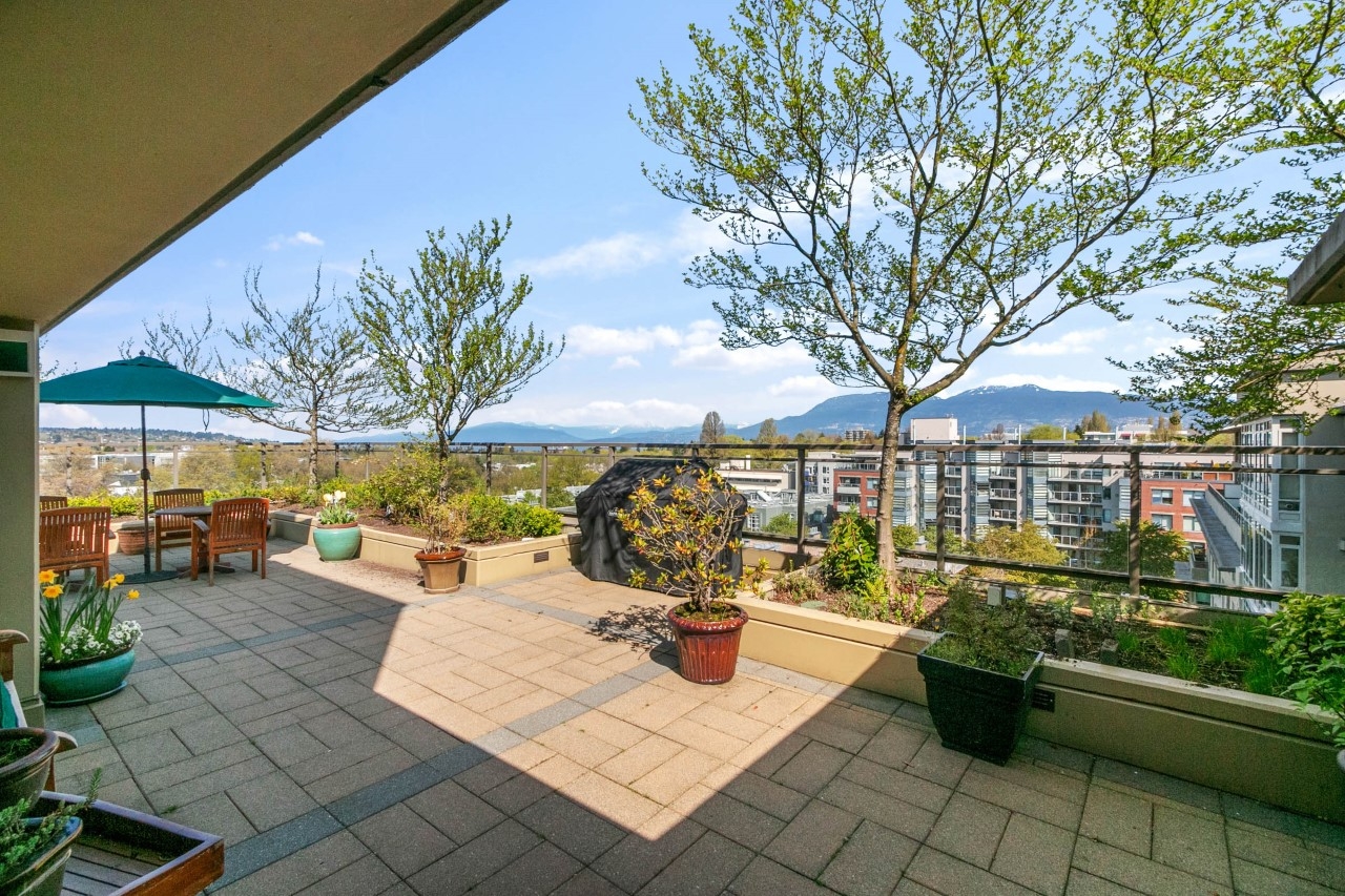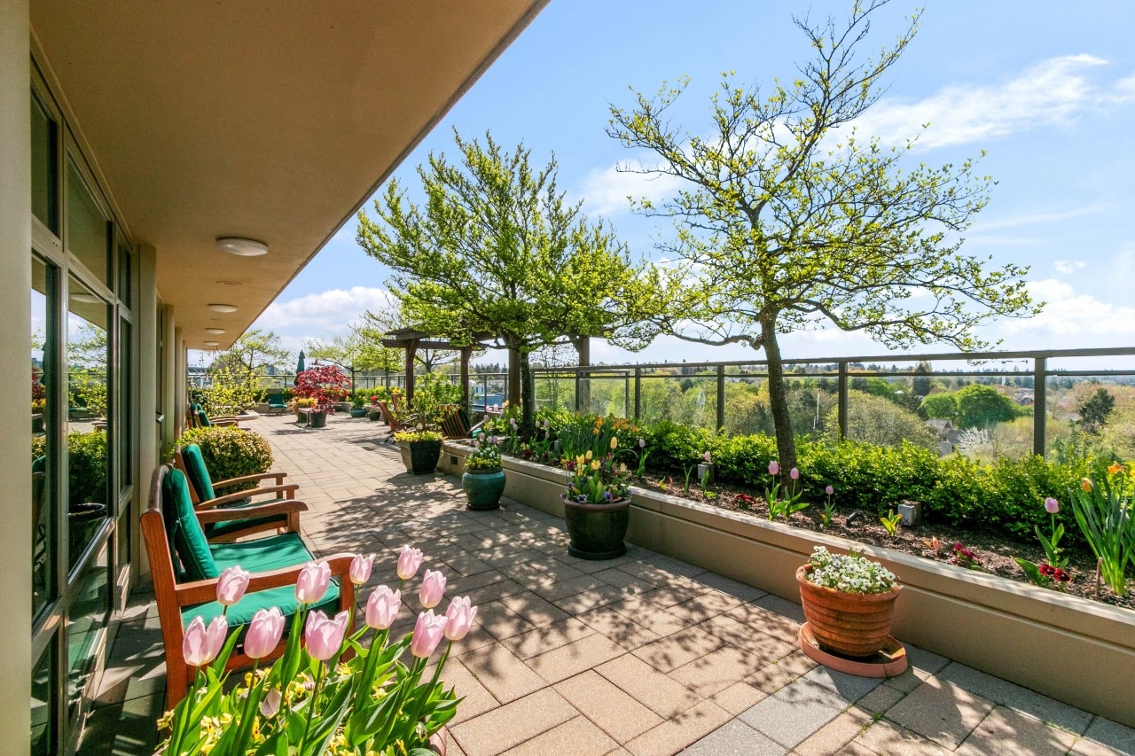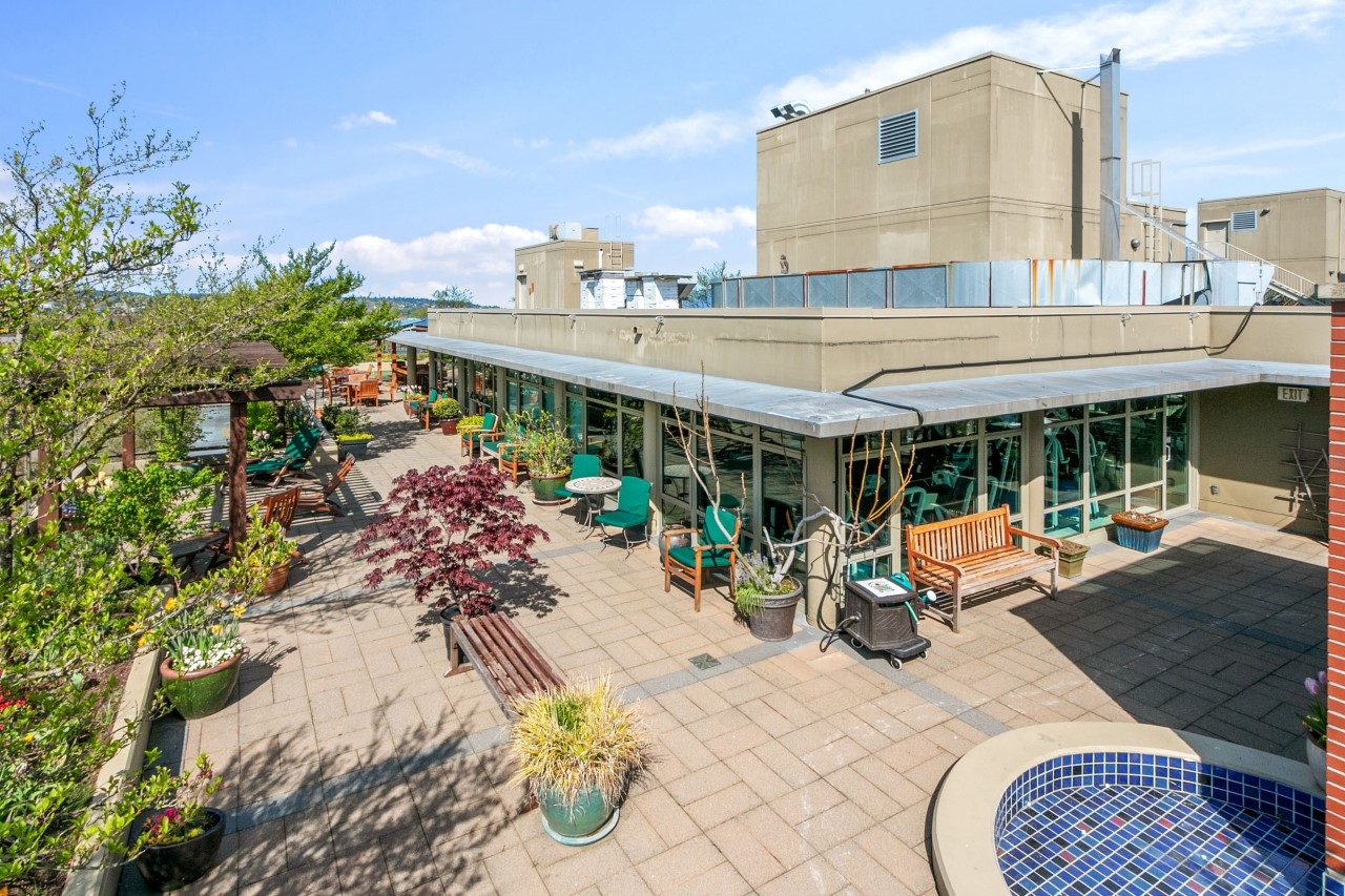 This is the only upper floor 1 bedroom condo that has a balcony with a depth of over 7’ (8’ x 7’) to create an inviting, private outdoor oasis to enjoy. South exposure provides fantastic natural light, open sky/treetop views. Independent living services include weekly housekeeping, gourmet dining, spa/salon, fitness centre, rooftop terrace with a putting green, cinema, pub, library & concierge, all in a convenient central Kitsilano location.