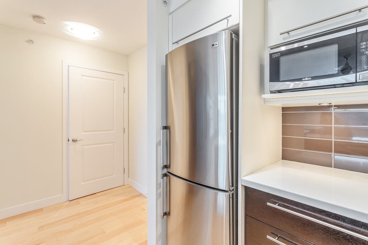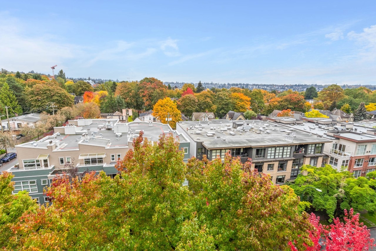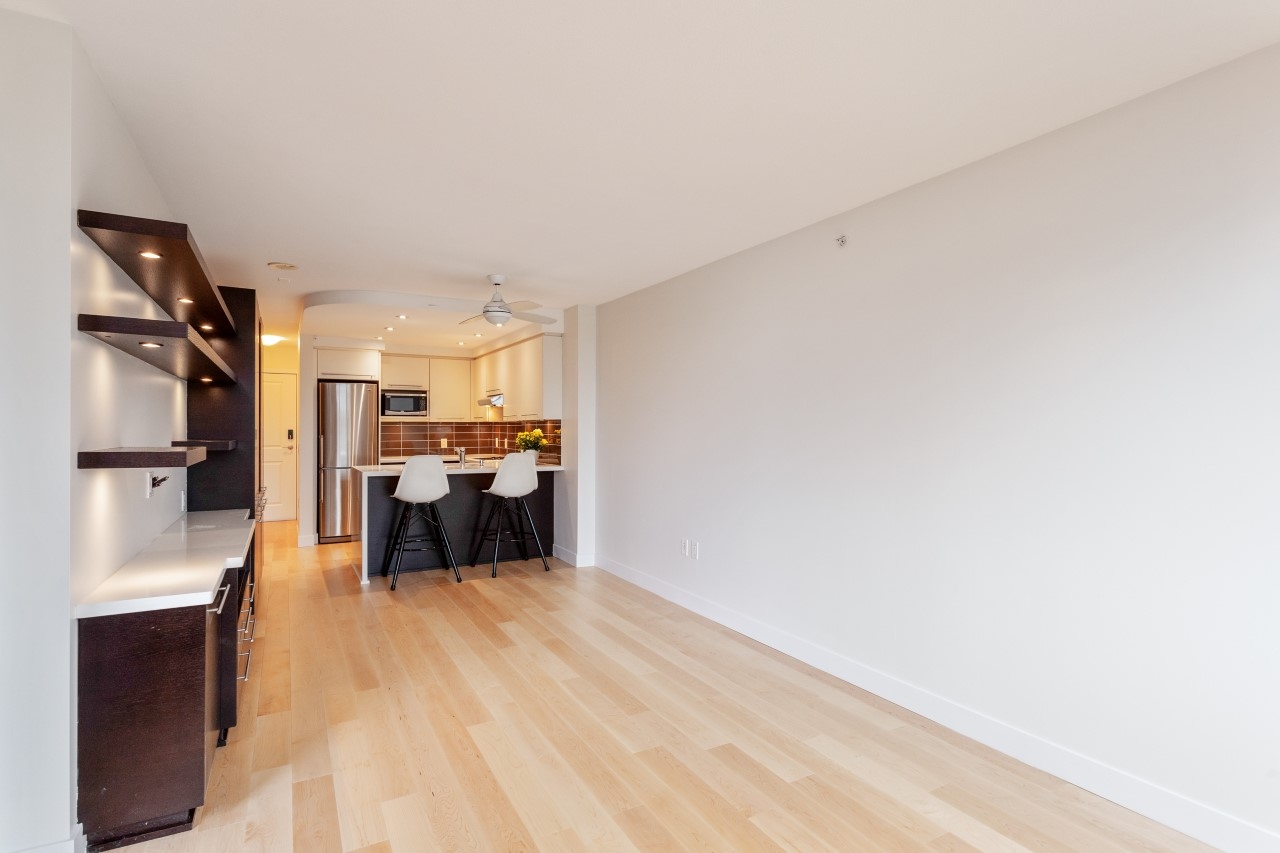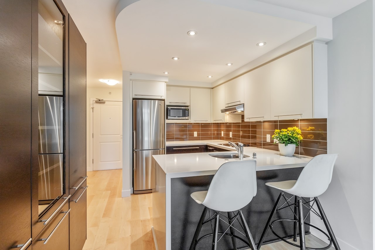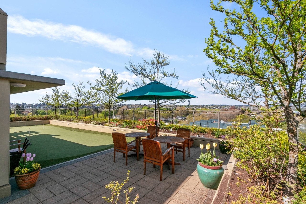 This is the only upper floor 1 bedroom condo that has a balcony with a depth of over 7’ (8’ x 7’) to create an inviting, private outdoor oasis to enjoy. South exposure provides fantastic natural light, open sky/treetop views. Independent living services include weekly housekeeping, gourmet dining, spa/salon, fitness centre, rooftop terrace with a putting green, cinema, pub, library & concierge, all in a convenient central Kitsilano location.
